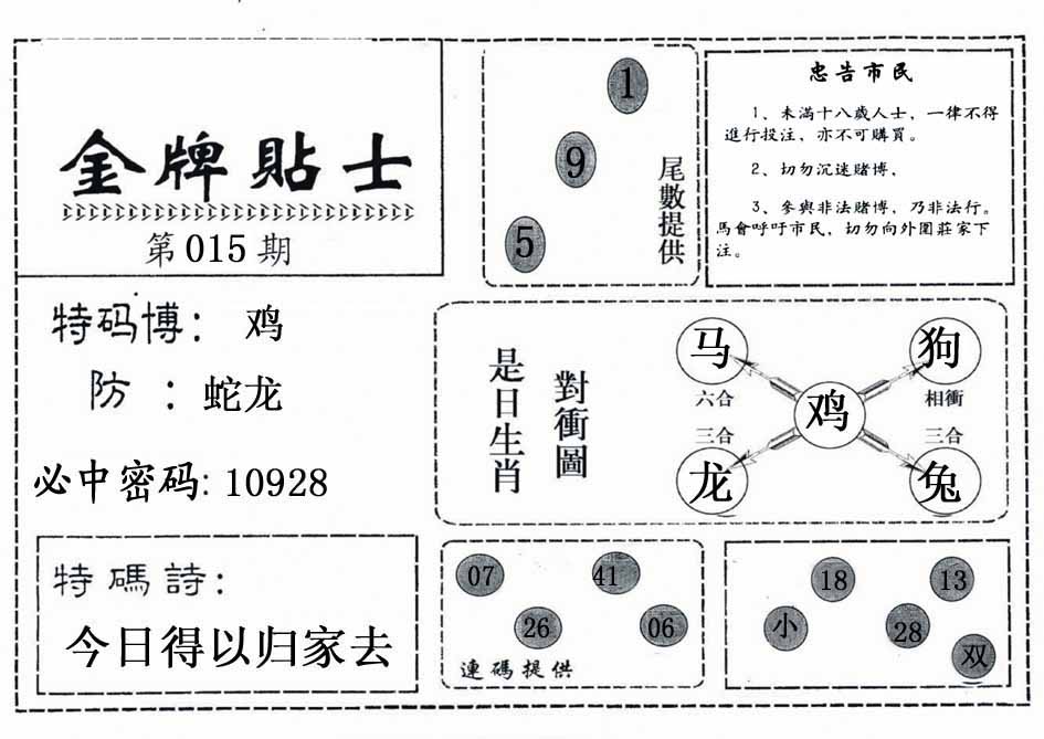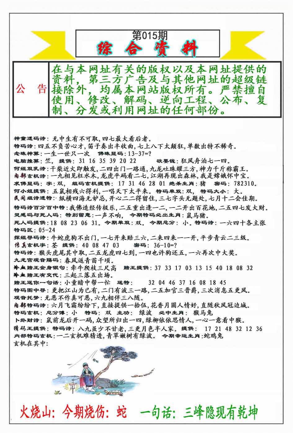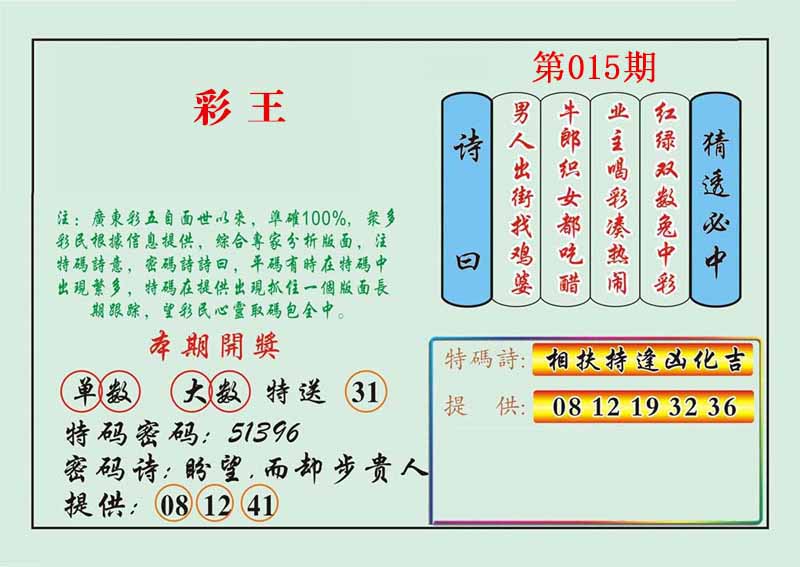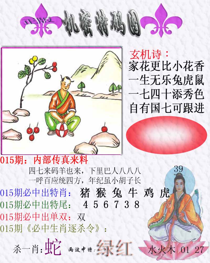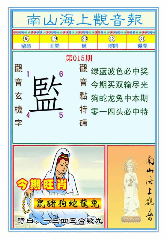 015期:【鸡声啼晓千山秀】开?00 |