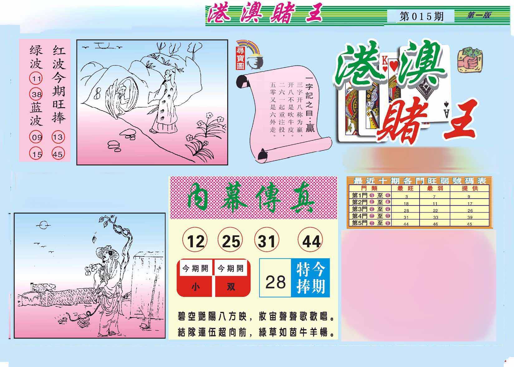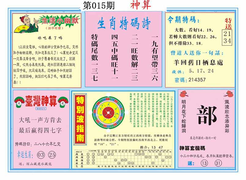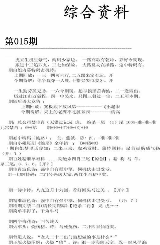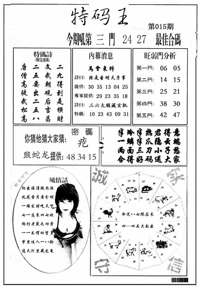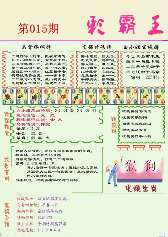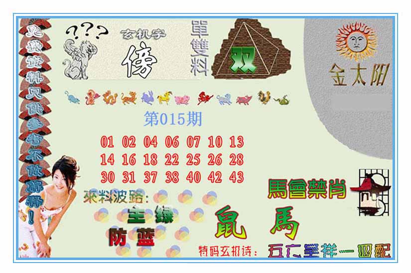015期澳门欲钱料 |
