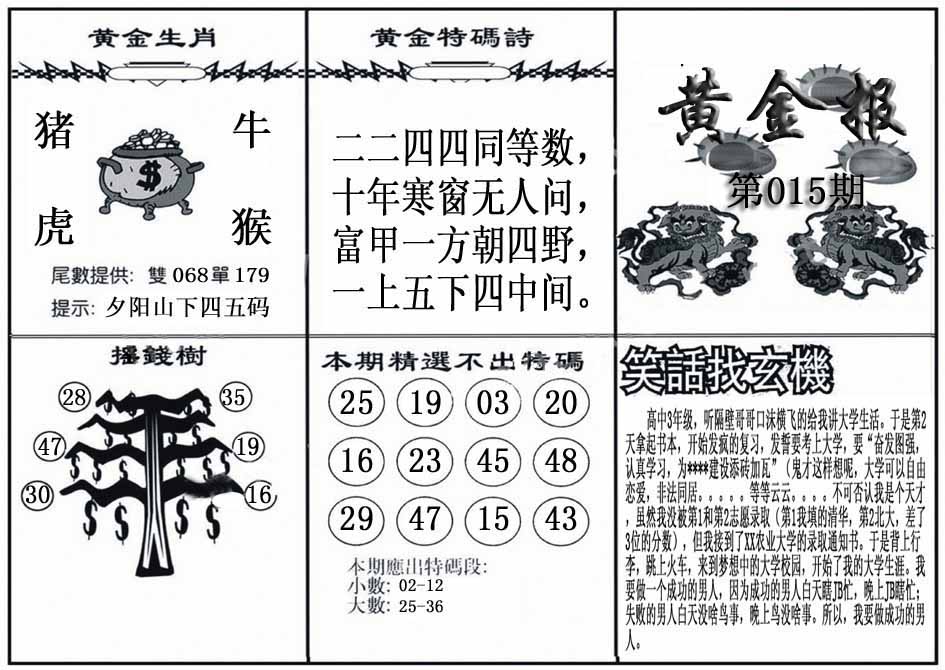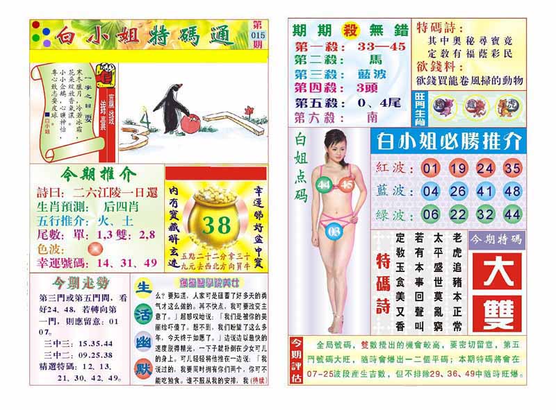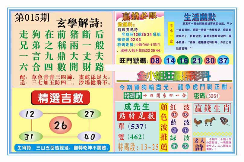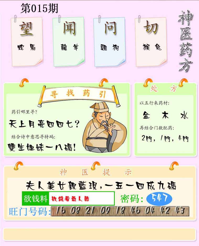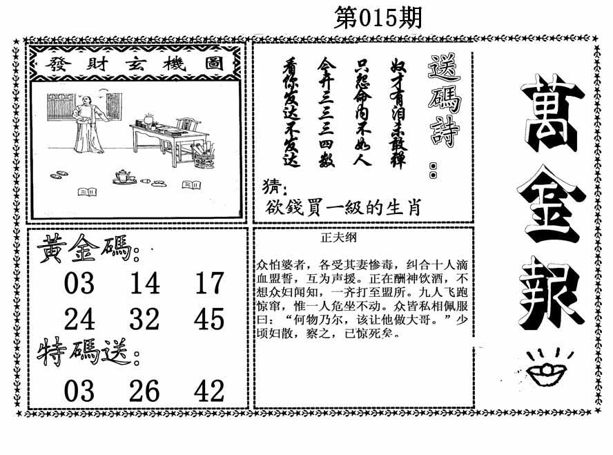 015期澳门欲钱料 |
