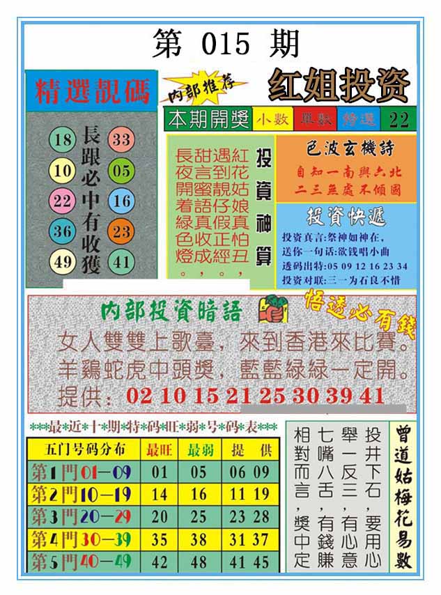 015期稳中九码:49 41 34 20 01 04 06 21 18 |