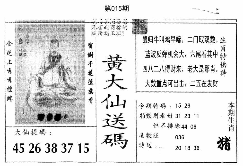 012期:三头中特【4 0 2】开:龙26 |