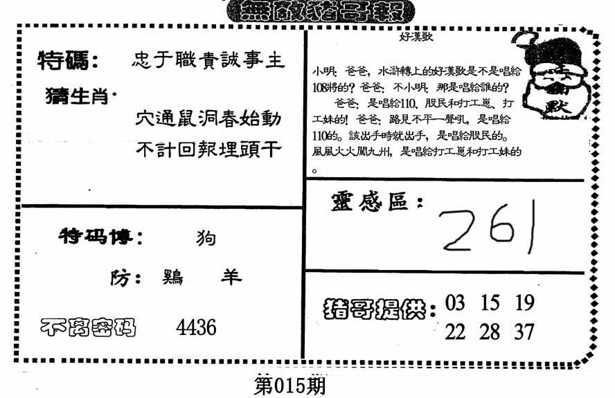 | 015期【兔蛇狗龙马猪羊猴】开?00 |